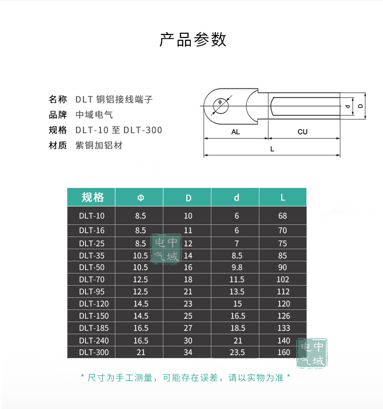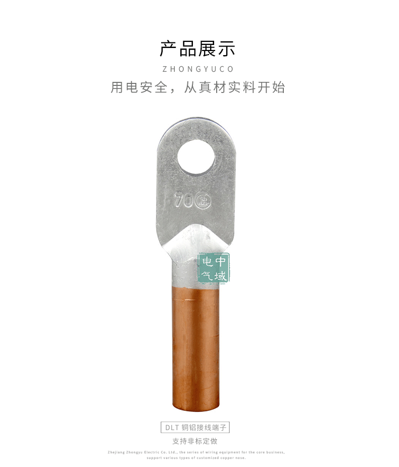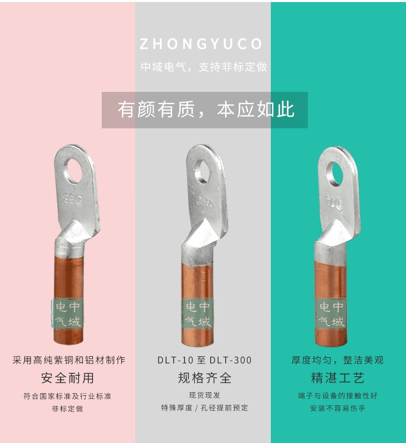 DLT铜铝鼻子 铝铜接线端子 铝铜线耳过渡鼻子 铝端头接铜电缆