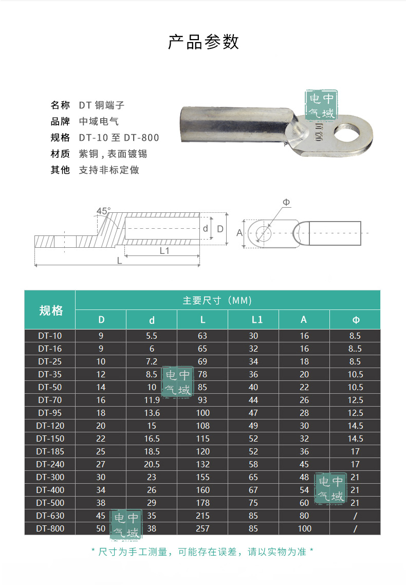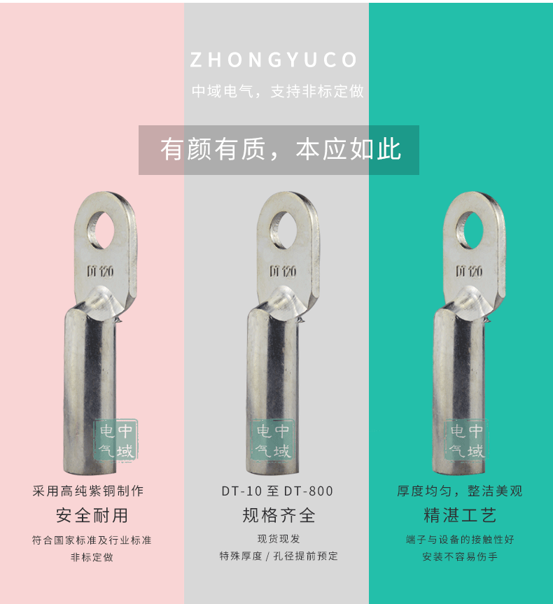 DT铜接线端子 光伏新能源 铜接头线耳 堵油型铜端头