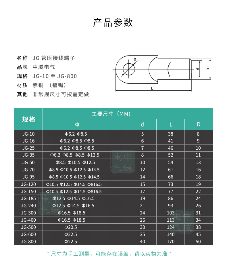 JG管压铜鼻子 管制线鼻子 接线端子 电缆终端铜接头线耳