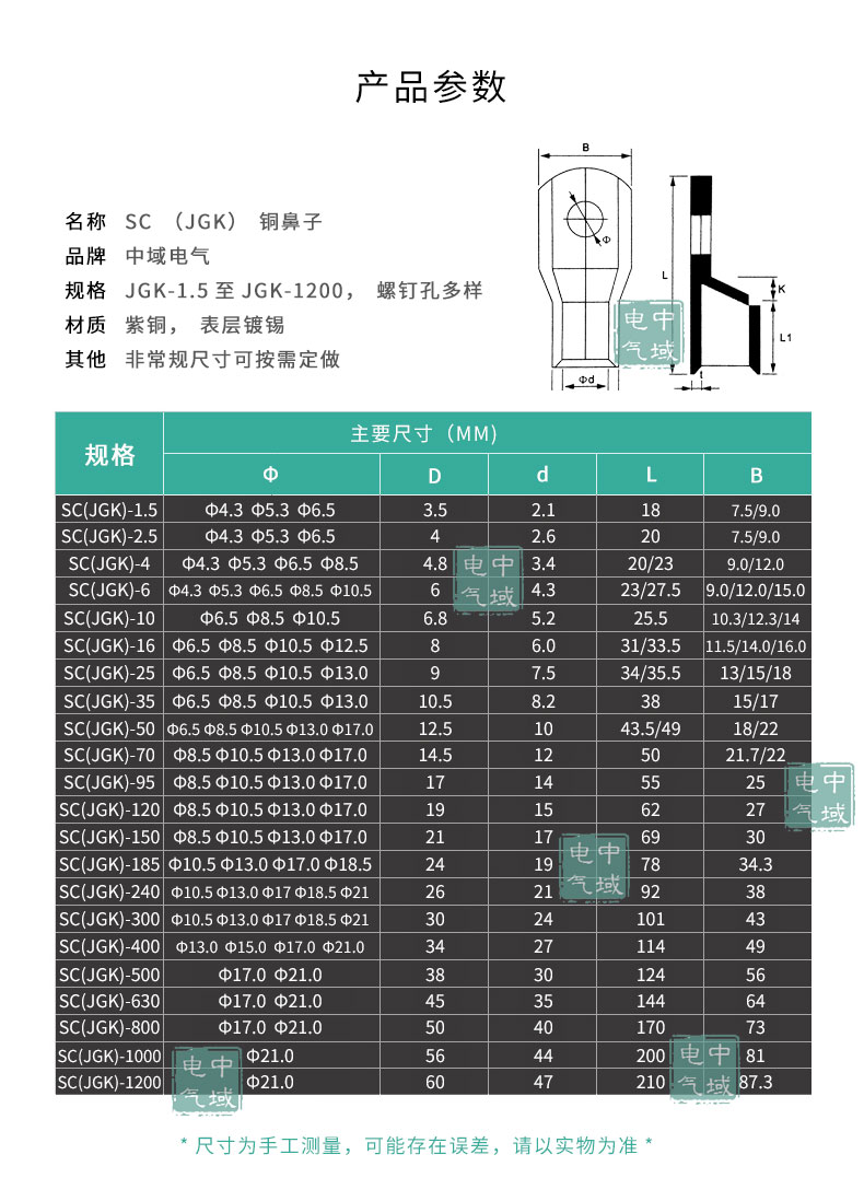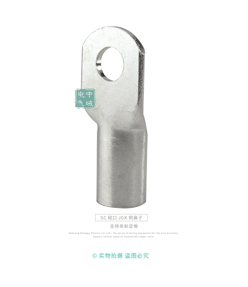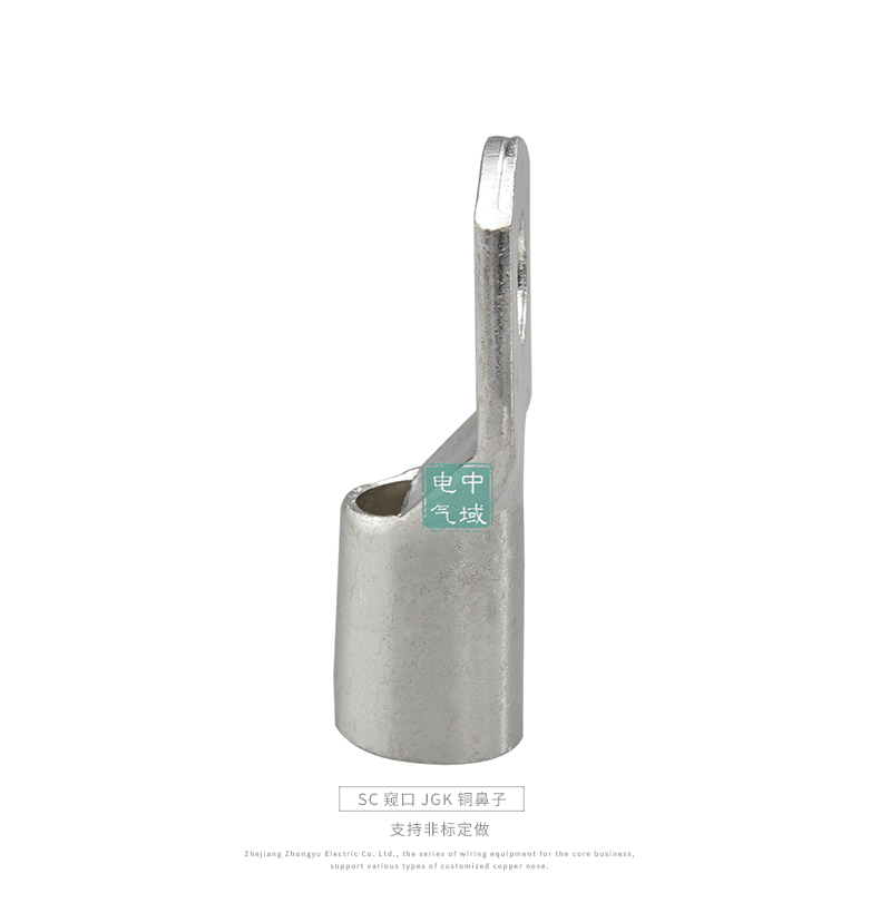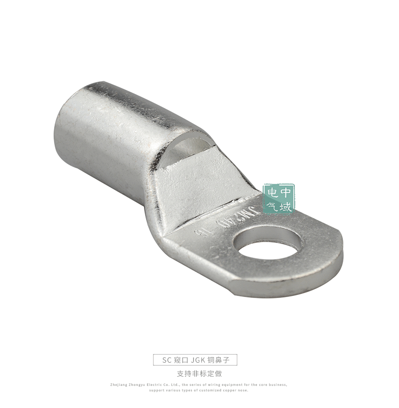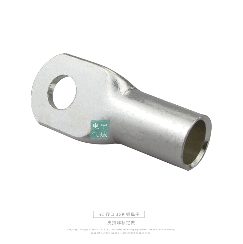 SC铜鼻子常用的型号是JGK的,通称窥口型铜鼻子,每个规格有多种螺钉孔大小可选。表层镀锡,增加导电性,抗氧化。