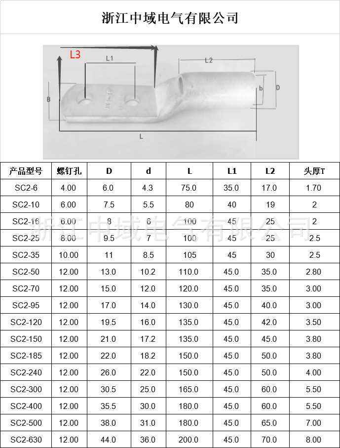中域电气,SC双孔铜鼻子,采用高纯紫铜压制而成(拒绝回收铜),表层镀锡,增加导电性,抗氧化。中心孔距可以定做,其他特殊需求,如:头宽、厚度、中心孔距、螺钉孔大小等特殊需求,支持非标按需定做。模具齐全!